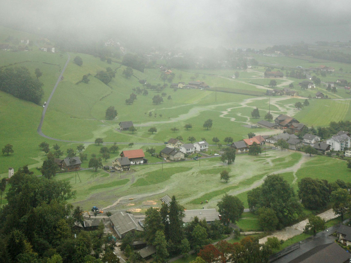 Die Übersarungen und Überschwemmungen im Jahr 2005 erfolgten aufgrund des Meisibachs. Das Ereignis zeigt den natürlichen Wasserlauf aufgrund der bestehenden Topografie. Mit baulichen Massnahmen, moderaten Geländemodellierungen sowie mobilen Sperren können die Wassermassen in Zukunft kontrolliert in den Alpnachersee geleitet werden.